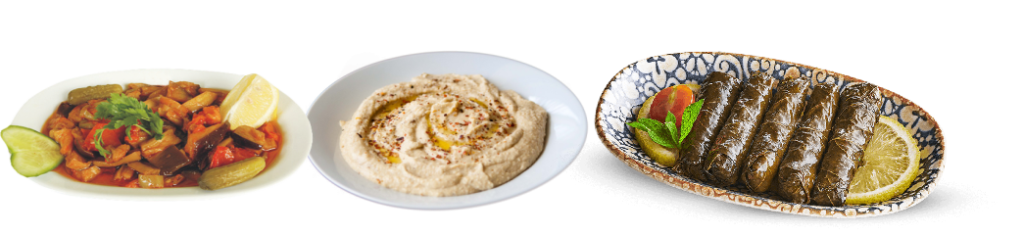 Tzatziki, ezme, saksuka, börek, halloumiost, vindruvsbladdolma, humus