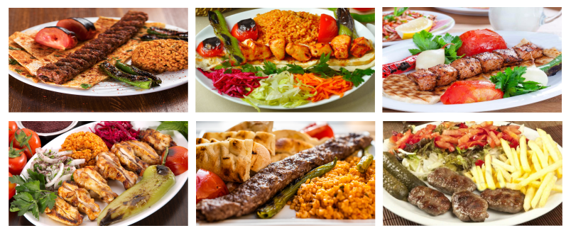Kolgrilltallrik med adana, kycklingspett, köfte, lammkotlett och shish kebab 1 person